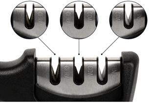A késélező lelke az a különleges élezőfej, melyet 3 féle vájattal, azaz fázissal láttak el. A 3 élezőfázis más-más jótékony hatást fejt ki a pengére, ezáltal a végeredmény lényegesen precízebb lesz, mint a hagyományos élezők esetében. Késeid sokkal jobban fognak vágni, ráadásul ellenállóbbak is lesznek a karcolásokkal szemben.